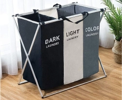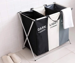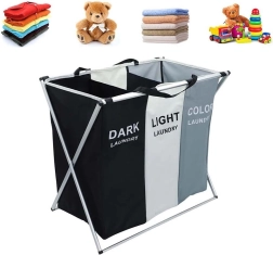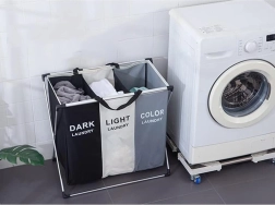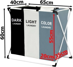 Tegye egyszerűbbé a mindennapi mosást a három rekesszel ellátott ruhakosár segítségével, amely lehetővé teszi a ruhák szín szerinti szétválasztását. Kiváló minőségű anyagokból készült, és ötvözi a praktikus funkcionalitást az elegáns dizájnnal. Ez a ruhakosár könnyedén illeszkedik bármely belső térbe.