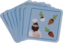 Fa alap, filc termények, kártyák, szilikon kosárkák és fa eszközök alkotnak egy tartós szettet, amely bírja a mindennapos játékot és újra meg újra felfedezésre hív.