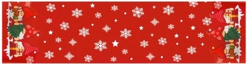 Elegáns piros futó fehér hópelyhekkel és csillagokkal, a végeken bájos ajándékos manókkal – azonnal ünnepi és meghitt hangulatot teremt. Remekül mutat fehér abroszon és önmagában is, klasszikus étkészletekkel könnyen harmonizál.