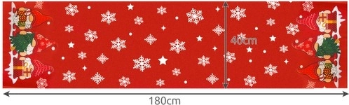 Varázsoljon ünnepi hangulatot az asztalra ezzel a piros futóval, melyet három manó és hópelyhek díszítenek. Belső terének varázslatos karácsonyi atmoszférát kölcsönöz, miközben védi az asztal felületét a foltoktól és a karcolásoktól. A lézeres vágásnak köszönhetően a szélek nem foszlanak, a könnyű tisztítás pedig biztosítja, hogy a futó sok szezonon át örömet szerezzen.