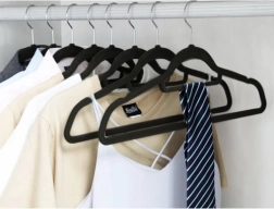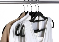 - Magas minőségű anyag: A vállfák műanyagból készülnek és finom velúrral vannak bevonva, ami megakadályozza a ruhadarabok lecsúszását.