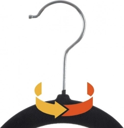 - Forgatható akasztó: Minden vállfa forgó fém akasztóval rendelkezik, amely 360 fokos forgatást biztosít a könnyű és kényelmes felakasztáshoz.