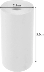 A csomagban található 5 tekercs fehér papír, melyek szélessége 5,6 cm és átmérője 2,5 cm, súlyuk 92 g, csomagolással együtt 102 g. A kompakt méreteknek köszönhetően könnyen kezelhetőek és tárolhatóak.