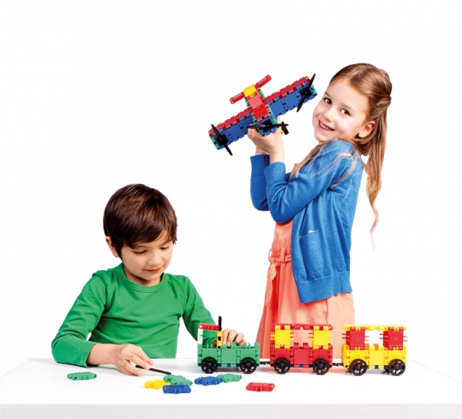 Az okos, összepattintható rendszernek köszönhetően a gyerekek könnyedén megépítik a repülőt, a mozdonyt, az autókat és az állatkákat – és bármikor átalakíthatják őket saját fantáziájuk szerint.