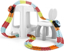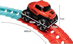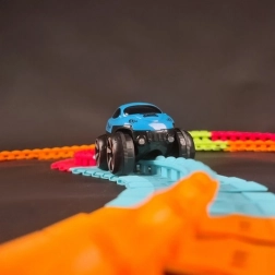 Építs akár 4,8 m hosszú saját versenykört 192 rugalmas elemből, és vágj bele őrült hurkokba, dőlésekbe és kanyarokba! A készlet része egy elemes LED kisautó cserélhető karosszériával (piros vagy kék). A pálya könnyen összeállítható, színes, és remekül fejleszti a gyerekek kreativitását, motorikáját és képzeletét.