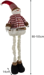 Ez a plüss karácsonyi hóember meghitt, ünnepi hangulatot varázsol az otthonodba. Pihe-puha textilkialakításával, feltűnő téli kiegészítőivel és vidám arckifejezésével első pillantásra magára vonja a figyelmet. A teleszkópos lábaknak köszönhetően magassága könnyedén állítható 80 és 105 cm között – így a padlón, a polcon vagy a fa alatt is remekül mutat.