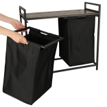 Élvezze a praktikusságot és a stílust ezzel a két rekeszes ruhakosárral, amely lehetővé teszi a ruhák könnyed válogatását világos és sötét színek szerint a két eltávolítható textilzsáknak köszönhetően. A stabil fém váz biztosítja a termék robusztusságát és tartósságát.