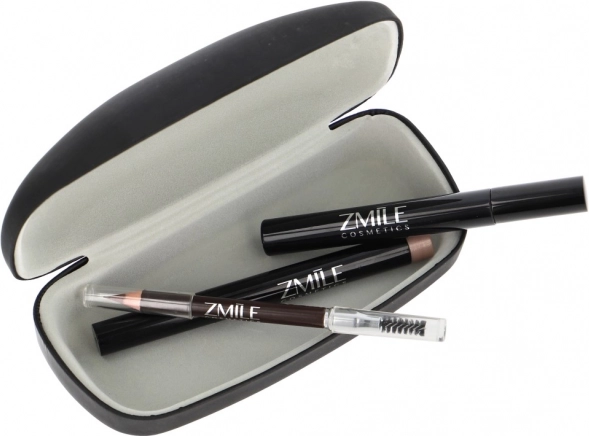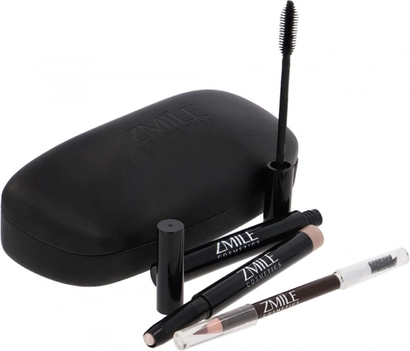 „What a look” kozmetikai szett – praktikus, zárható tokban. Tartalma: 1× szempillaspirál, 1× krémes szemhéjfesték ceruza + hegyező, 1× szemöldökceruza kefével. Bőrgyógyászatilag tesztelt, megfelel az EU szigorú előírásainak.