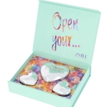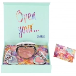 „Sweethearts Pastel Love” kozmetikai szett – az ajándékcsomag 3 fém szívecskét tartalmaz – 1× pirosító, 1× szemhéjpúder és 1× rúzs. Bőrgyógyászatilag tesztelt, megfelel az EU szigorú előírásainak.