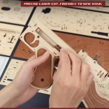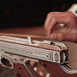 Ez a fa mechanikus építőkészlet a legendás THOMPSON géppisztoly valósághű élményét nyújtja. A pontos lézervágásnak köszönhetően az elemek tökéletesen illeszkednek, az összeszerelés gördülékeny és kielégítő. A befejezés után egy látványos modellt kapsz működő gumimechanizmussal, amely valóban lő.