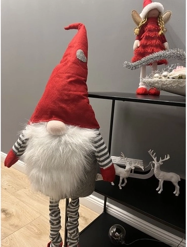 • Gyönyörű dekoráció - a barátságos manó varázslatos tulajdonságokkal bír, amelyek ünnepi hangulatot visznek abba a térbe, ahol elhelyezik. Mit rejt a manó belül? Magas sapkát, amelyet különböző irányokba lehet hajlítani, domború pocakot és gyönyörű szakállat, amely mindenkit karácsonyi hangulatba hoz.