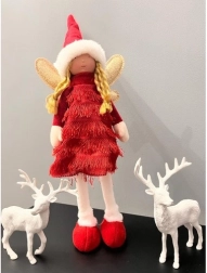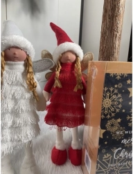 Ez a varázslatos angyal/tündér figura piros színben karácsonyi varázst hoz otthonába. A fényesen csillogó aranyszárnyak szépen verik vissza a fényt, a kötött részletekkel díszített téli öltözet, a garbós ruha és a prémes sapka pedig meghitt, ünnepi hatást kelt.