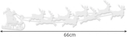 Szánon ülő Mikulás, rénszarvasok és téli házikók motívumai látványos karácsonyi jelenetet teremtenek az ablakokon.