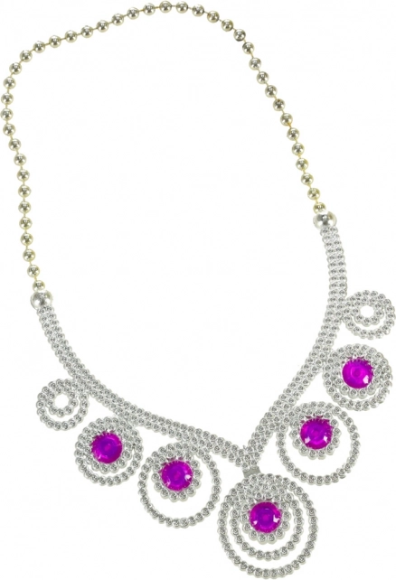 Ezüst tiara rózsaszín kövekkel, hozzá illő nyaklánc és fülbevaló, amelyek elbűvölő csillogást adnak minden jelmeznek. Két gyűrű teszi teljessé a szettet a legapróbb részletekig.