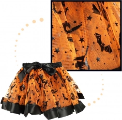 Ez a 3 részes boszorkányjelmez minden gyermeket kis varázslóvá változtat. A könnyű tütü szoknya rugalmas derékkal egész nap kényelmes, a magas, hegyes kalap varázslatos megjelenést ad, a seprű pedig teljessé teszi az öltözetet. A narancssárga, fekete denevér-, tök- és csillagmintákkal feltűnő és fotogén.