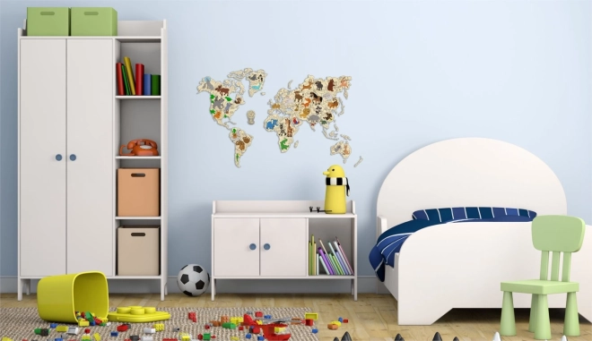 - Fali, fából készült világtérkép állatokkal