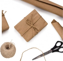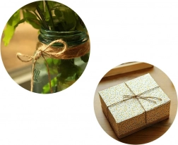 A természetes juta zsinór remekül kiegészíti az újrahasznosítható papírt, és gyönyörű, fenntartható, műanyagmentes csomagolást eredményez.