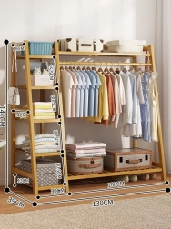 Az elegáns és funkcionális, 130 cm hosszú bambusz ruhafogas ideális a ruhák és kiegészítők áttekinthető tárolására. A vállfatartó rudat öt praktikus polccal kombinálja, így minden kéznél van – a kabátoktól és zakóktól kezdve egészen a dobozokig, törölközőkig vagy takarókig. A természetes bambusz meleg, modern megjelenést kölcsönöz a belső térnek, és egyben környezetkímélő.