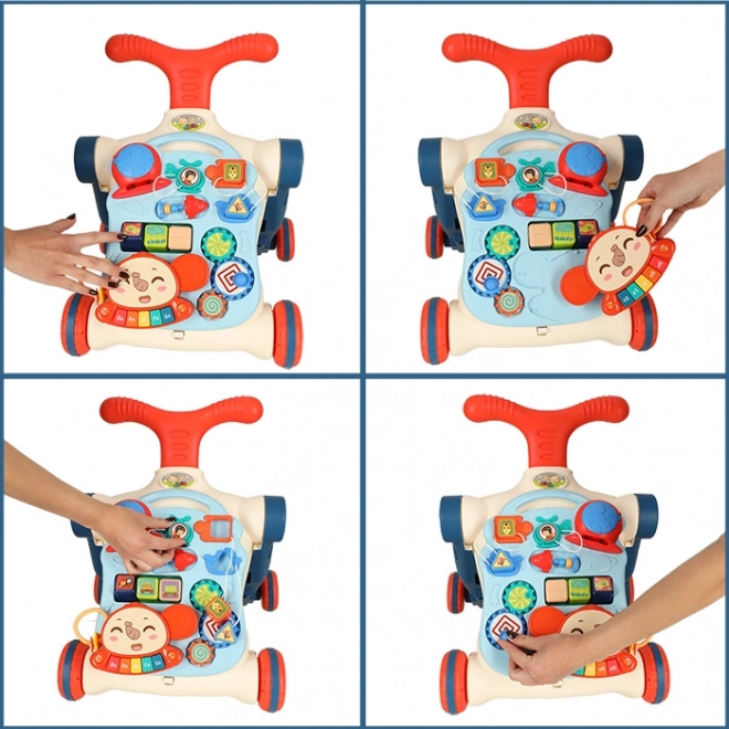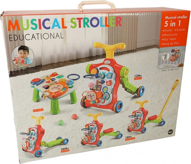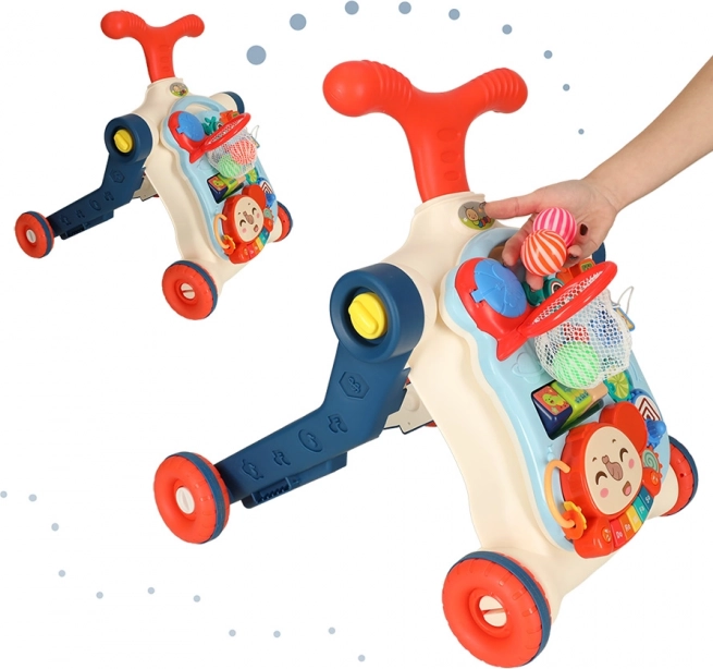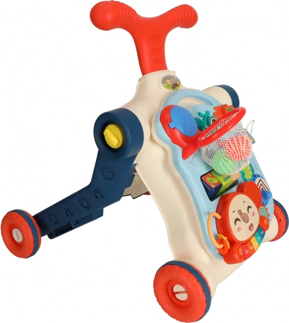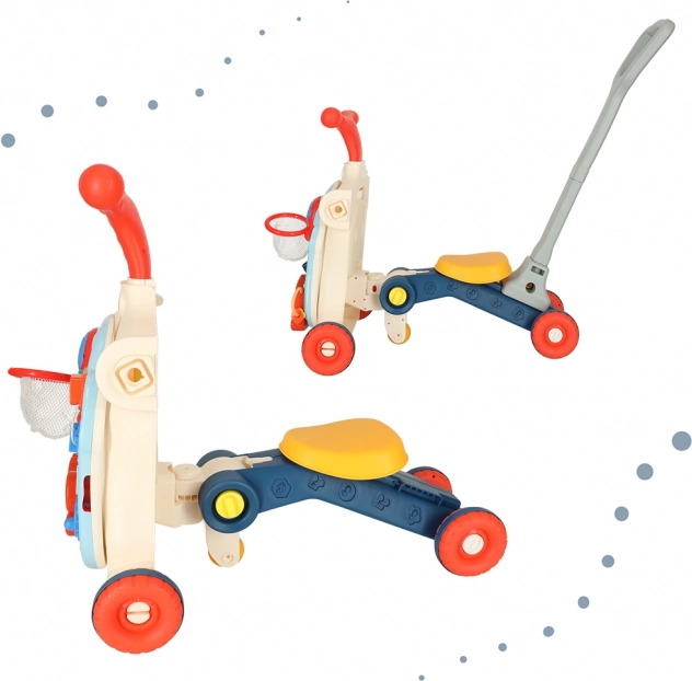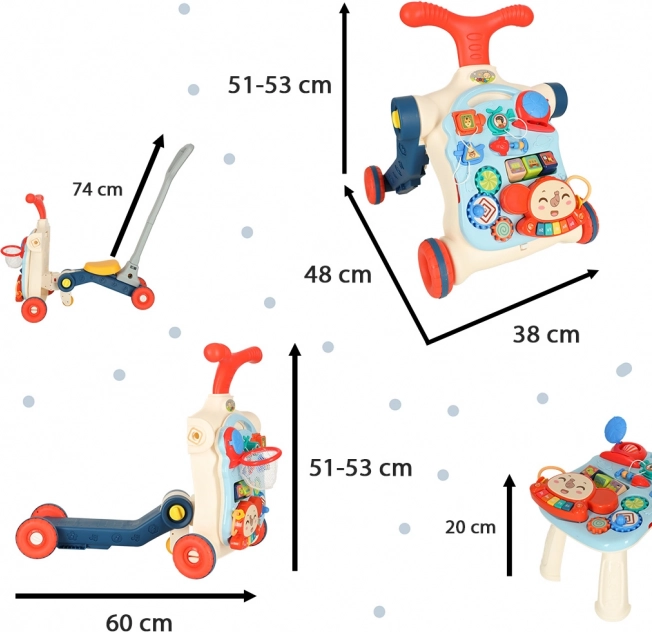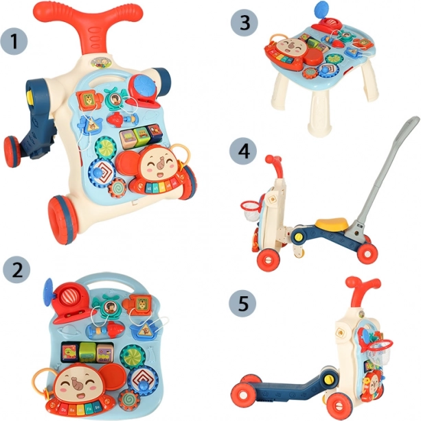 Az 5 az 1-ben multifunkciós gyermek járóka és interaktív asztal öt különböző módosítást kínál a gyermek életkorától függően: járóka, roller, futóbicikli, interaktív asztal és függőleges tábla. Ez a termék együtt fejlődik gyermekeddel, anélkül, hogy új játékokat kellene vásárolni.