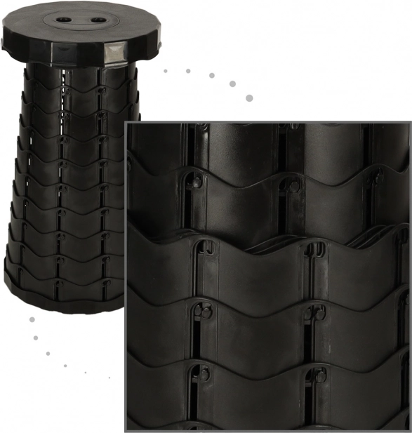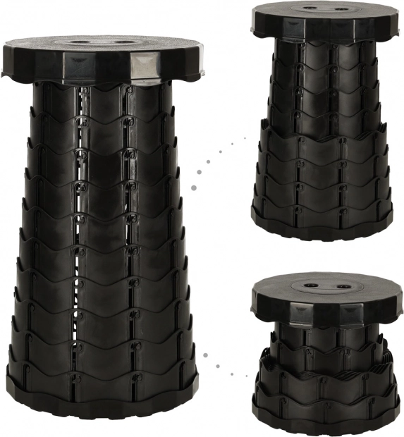 Ez a hordozható teleszkópos szék kényelmes ülőhelyet biztosít sorban állás, fesztivál, kempingezés vagy horgászat közben. Pillanatok alatt felállítható – egyszerűen forgassa el a talpakat, húzza ki a kívánt magasságra, és a mechanizmus biztonságosan rögzül a véletlenszerű összecsukódás ellen.