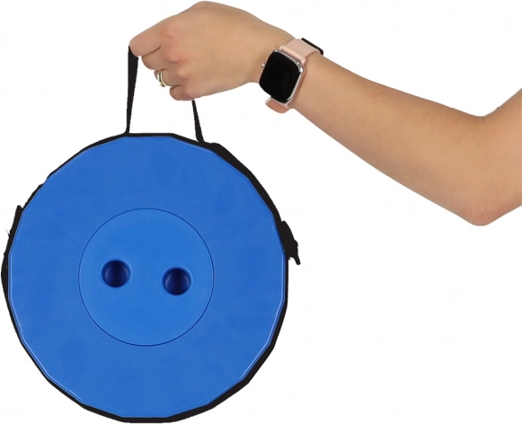 Az integrált fogantyú és az állítható pánt kényelmes kézi vagy vállas hordozást tesz lehetővé. Összecsukva a szék lapos, helytakarékos formát kap.