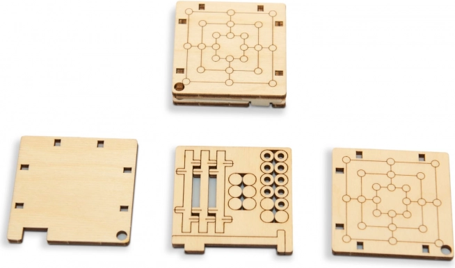 A kis fa játéktábla elfér a tenyérben és a zsebben is. Ideális utazáshoz, iskolába vagy munkába – egy gyors parti bármikor, amikor van egy kis idő.