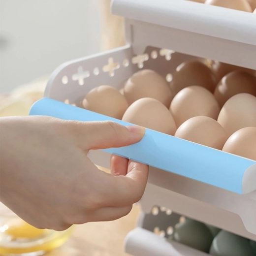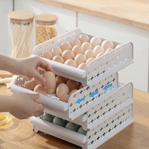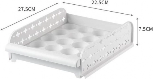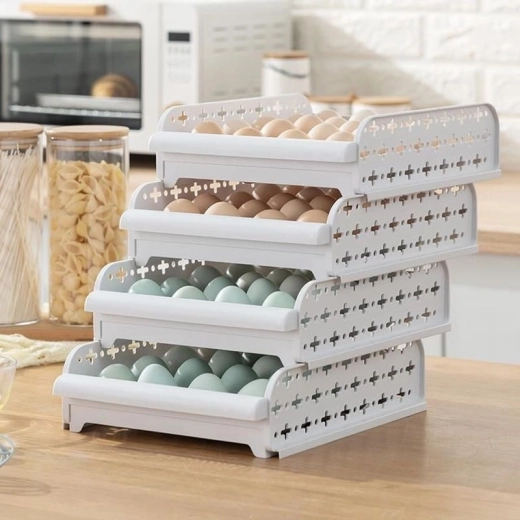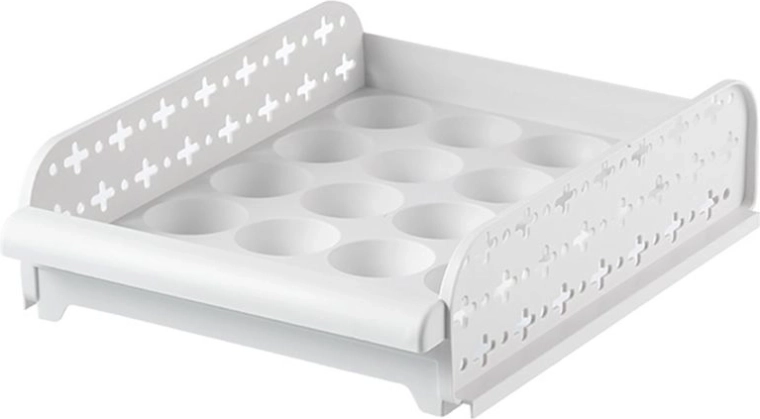 Praktikus tojástároló edény a megfelelő szellőzéshez. A tárolók egymásra helyezhetők, és fiókként kihúzhatók.