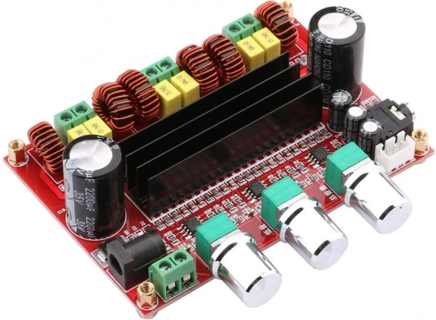 Teljesítményerősítő 2.1 2x80W +100W (WOOFER) TPA3116D, 12V-24V TPA3116D2, Arduino