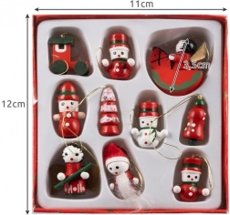 A készlet 10 különböző fa karácsonyi díszt tartalmaz, mint például csillag, Mikulás, harang és további téli motívumok. Örömet és eleganciát kölcsönöznek minden fának.