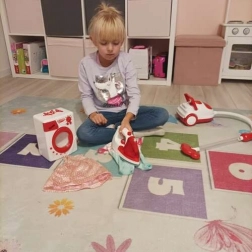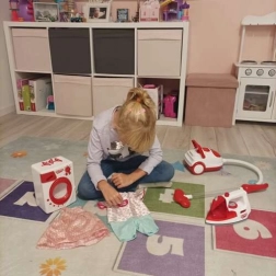 Fedezze fel a házimunkák világát a gyermek háztartási készülékszettünkkel. Három valósághű készüléket - mosógépet, vasalót és porszívót tartalmaz, amelyek a gyermekek kedvencei lesznek. Minden készülék úgy lett tervezve, hogy utánozza a valódi funkciókat, így járulva hozzá a szórakoztató és tanulságos játékhoz.