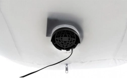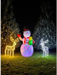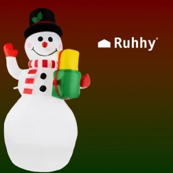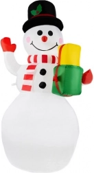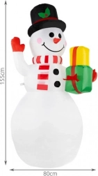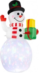 A beépített LED projektorral ellátott felfújható hóember kitűnő dekoráció kültéri és beltéri használatra egyaránt. Fekete kalappal, piros orral van ellátva, és ajándékokat tart. A felhasznált vízálló és tartós anyagok hosszú élettartamot és remek megjelenést több éven át biztosítanak. Ezen kívül a hóember beépített kompresszorral rendelkezik, amely gyorsan fújja fel a szerkezetet tökéletes formára.