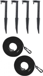 A csomag négy csapot, két kötelet és két karabinert tartalmaz a hóember ledőlés vagy szél elleni biztosításához.