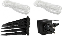 A poliészter szerkezet IP44 védettséggel ellenáll a téli időjárásnak. A csomag tartalmaz köteleket, cövekeket és hálózati adaptert a biztonságos rögzítéshez és működtetéshez.