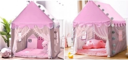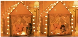 Varázslatos hangulatot varázsol a gyerekszobába. Ez a házikó formájú textil sátor meghitt kuckót teremt olvasáshoz, pihenéshez és végtelen játékhoz. A csomagban található 20 darabos cotton balls LED fényfüzér meleg fehér fénnyel kellemes atmoszférát teremt. A függönyös bejárat és a két ablak finom hálóból egyszerre biztosítja a privát szférát és a levegő keringését.