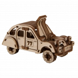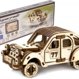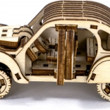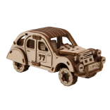 Ez a rallyautó-modell a kreatív szórakozás és az elegáns lakásdekor ütős kombinációját kínálja. Az első osztályú nyírfa rétegelt lemezből készült elemek pontosan illeszkednek – ragasztó és csavarok nélkül –, az eredmény pedig egy lenyűgöző retró autó számos apró részlettel.