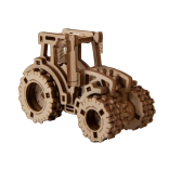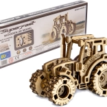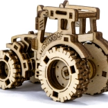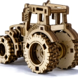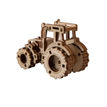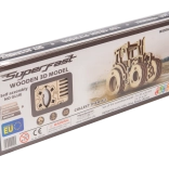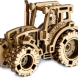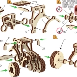 Lézerrel vágott rétegeltlemez-elemek valósághű traktorkinézetet adnak fogaskerekekkel és abroncsokkal.