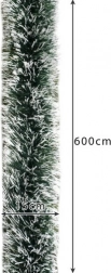 Ez a dekoratív girland élethűen utánozza a havas tűleveleket, és kiváló választás beltéri karácsonyi dekorációhoz. A 6 méteres hossz elegendő lefedettséget nyújt 220 cm feletti fákhoz, valamint lépcsők, ablakpárkányok vagy ajtókeretek díszítéséhez is. A sűrű, gazdag struktúra ideális hátteret ad fényfüzéreknek és egyéb díszeknek.