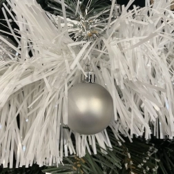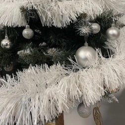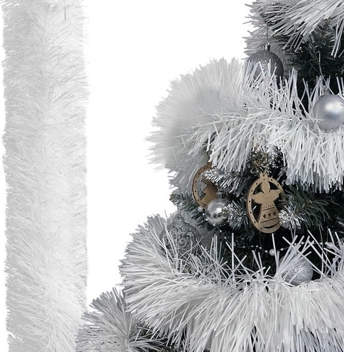 Ez a hosszú és sűrű fehér girland minőségi PE-ből készült, és hajlítható dróttal van megerősítve a könnyű formázás érdekében. Alacsony tömegének köszönhetően nem deformálja az ágakat, mégis nagyon gazdagnak hat. 6 méternyi dekor elegendő egy nagyobb fához vagy kiterjedtebb téli kompozícióhoz.