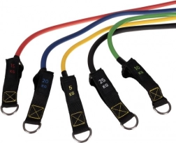 Öt, színnel jelölt gumi fedi le a teljes terhelési skálát. Több gumi kombinálásával könnyen személyre szabhatod az ellenállást a felső- és alsótest-edzéshez.
