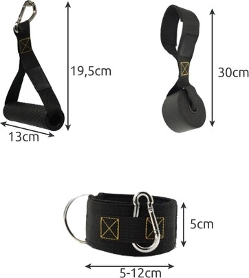 Az ajtóhorgony, a fogantyúk és a bokapántok bővítik az edzéslehetőségeket. A készlethez praktikus zsák is tartozik az egyszerű hordozáshoz.