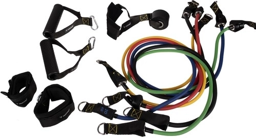 A TRIZAND univerzális ellenállásgumi-készlete mindent tartalmaz a hatékony otthoni edzéshez. Az öt, színkódolt, rugalmas latex gumi 5–25 kg ellenállási tartományt fed le, kombinálásukkal pedig nagyobb terhelést érhetsz el a fokozatos erősítéshez. A masszív fém karabinerek, a kényelmes habos fogantyúk, a bokapántok és az ajtóhorgony biztonságos rögzítést és széles körű felhasználást biztosítanak.