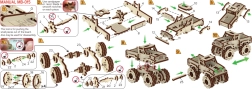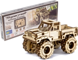 Ez a fa 3D puzzle, a MONSTER TRUCK 3, egyedülálló építési élményt kínál – ragasztó nélkül, rendetlenség nélkül, maximálisan pontos kivágásokkal. A modell az USA hadserege által használt első háború utáni teherjárművekből merít, és autentikus terepjárós megjelenést nyújt nagy kerekekkel és masszív fülkével.