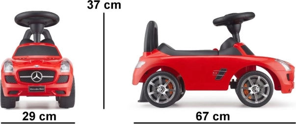 A legendás MERCEDES‑BENZ SLS AMG modell által inspirált lábbal hajtós autó a részletekre és a kis sofőrök kényelmére összpontosítva készült. Az aerodinamikus forma, a masszív kivitel és a könnyű kezelhetőség rengeteg vezetési élményt nyújt, miközben a háttámla és a stabil szerkezet segít a helyes ülés megtartásában.