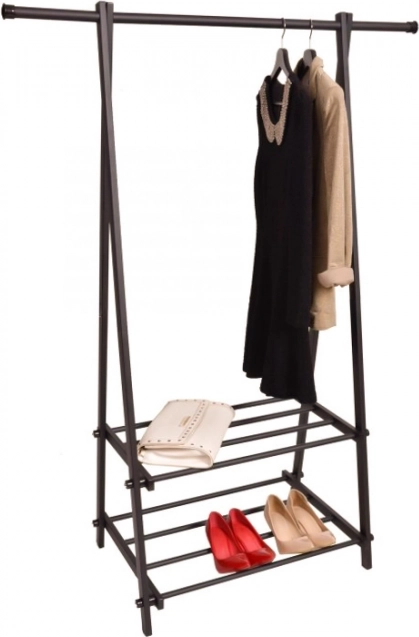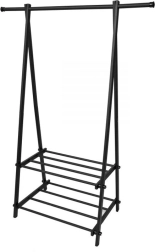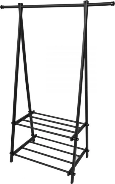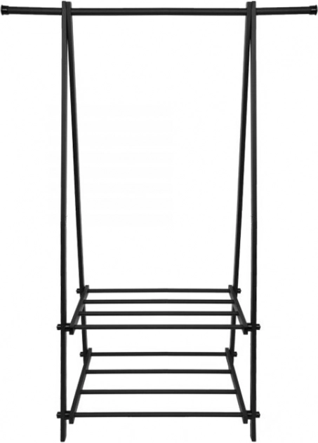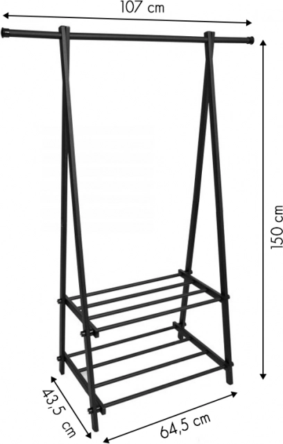 A kompakt és könnyű ruhatartó állvány segít rendet tartani a ruhák és kiegészítők között. Minimalista kialakítása jól illeszkedik a modern enteriőrökhöz, elegendő helyet biztosít kabátoknak, ingeknek és dzsekiknek, miközben a két polc cipőket, dobozokat vagy táskákat is tárol.