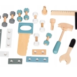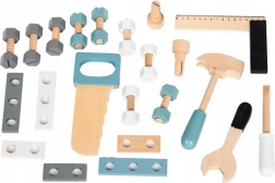 Akár 32 fa elem – szerszámok, csavarok, anyák és összekötők – a végtelen építési lehetőségekhez és játékos tanuláshoz.