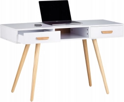 Fedezze fel az elegáns és funkcionális asztalt, amely remekül illik az otthoni dolgozószobába, hálószobába és nappaliba is. A fehér lap és a természetes fenyő lábak kombinációja letisztult skandináv megjelenést kölcsönöz, amely könnyen harmonizál modern és klasszikus enteriőrrel egyaránt. Az átgondolt tárolómegoldásnak köszönhetően minden kéznél lesz, a munkafelület pedig rendezett marad.