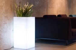 Ez a világítással ellátott virágtartó nemcsak mint presztízs növénytartó szolgálhat, hanem innovatív állólámpaként is funkcionálhat. A virágtartó karbantartása egyszerű - elég nedves ruhával és kevés szappannal áttörölni.