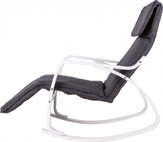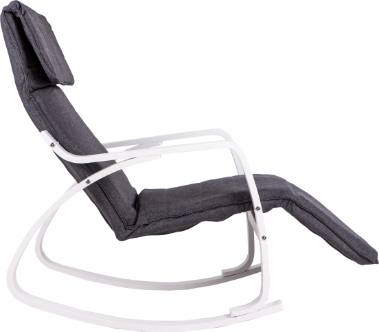 A ModernHome hintaszékét a maximális kényelem és nyugalom érdekében tervezték. Erős fém szerkezete fehér kivitelben, szürke szövet kárpitozással, otthonos ülésélményt nyújt. Az ötszintű lábtartó állításának köszönhetően könnyen beállíthatja az ideális pozíciót.