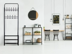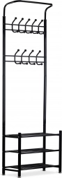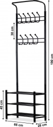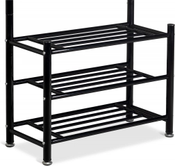 A tartó alsó részén három funkcionális polc található, amelyekre kisebb ruhadarabokat, táskákat, sőt cipőket is helyezhet. A stabil konstrukció 4 lábon biztosítja a stabilitást még nagyobb terhelés esetén is.