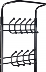 Ez a funkcionális ruhatartó a felső részén két sor 18 akasztóval rendelkezik, ami ideálissá teszi otthoni gardróbok, irodák vagy várószobák számára.